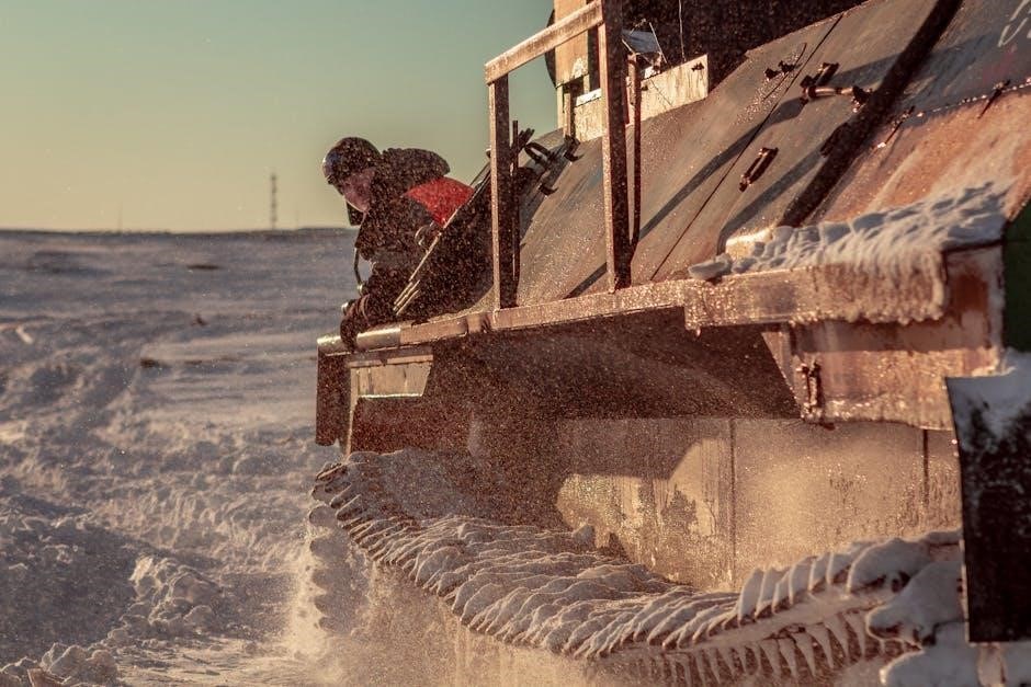 Familiarize yourself with the location and operation of all controls before use. Proper engagement of the drive system ensures efficient snow clearing. Regularly check drive belts for wear and tension, maintaining optimal performance and preventing slippage during operation. Safe operation relies on understanding these controls.