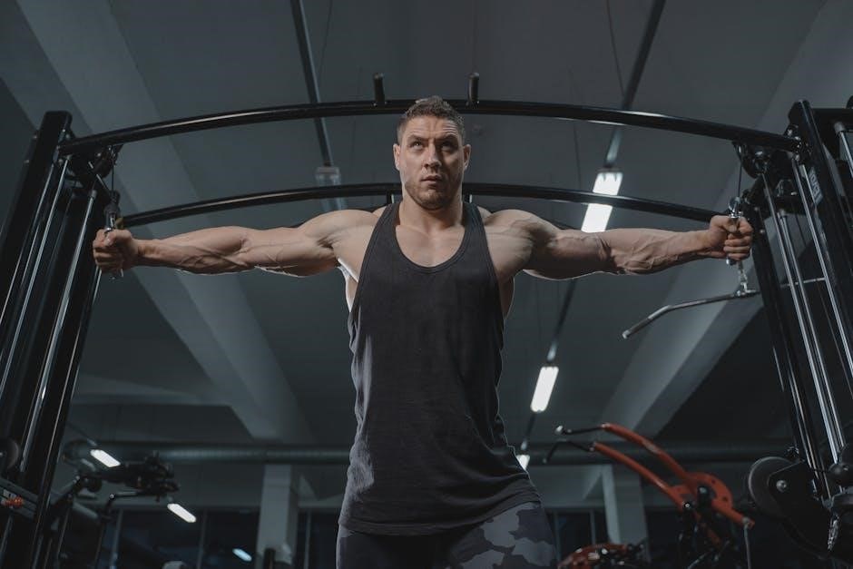 PDF resources often include detailed illustrations and descriptions of each exercise, emphasizing key alignment points. Pay close attention to scapular positioning, core engagement, and joint angles. Avoid compensating with other muscle groups to complete the movement.